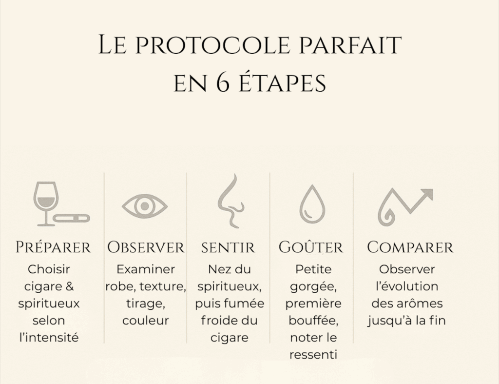 Astuce : alternez les ordres de dégustation (gorgée → bouffée ou inversement) pour percevoir la façon dont l’un “coiffe” l’autre.