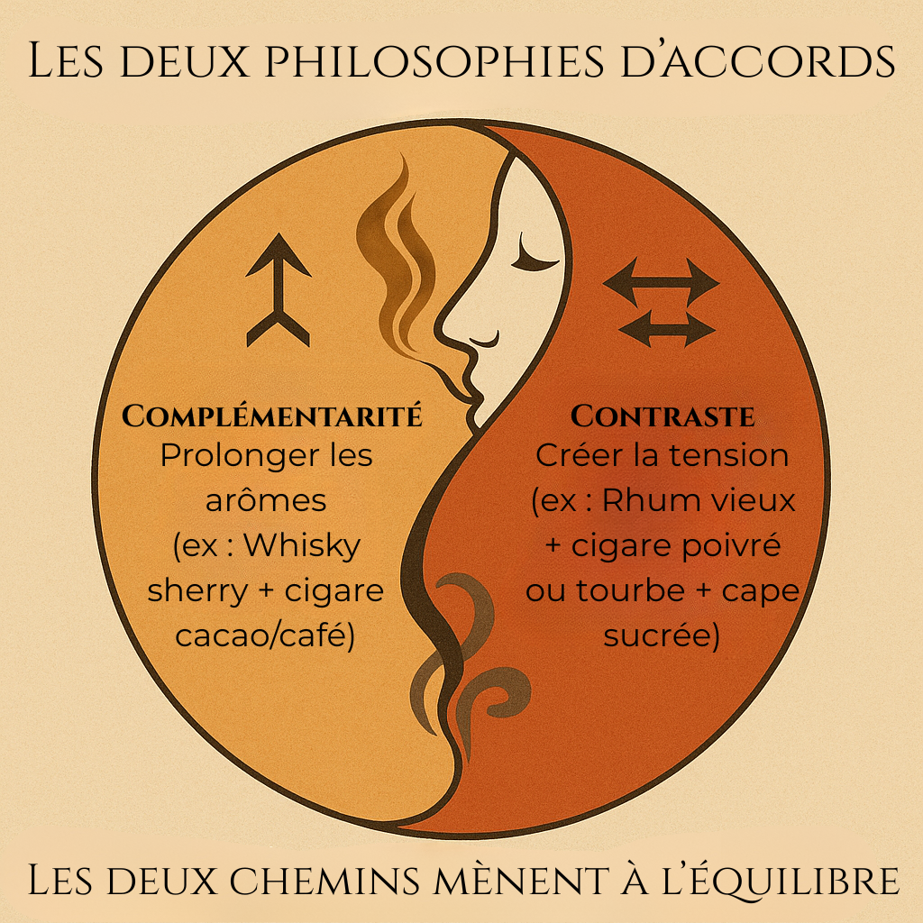 - L’accord de contraste : associer des profils opposés, par exemple un cigare sucré avec un spiritueux sec ou floral.