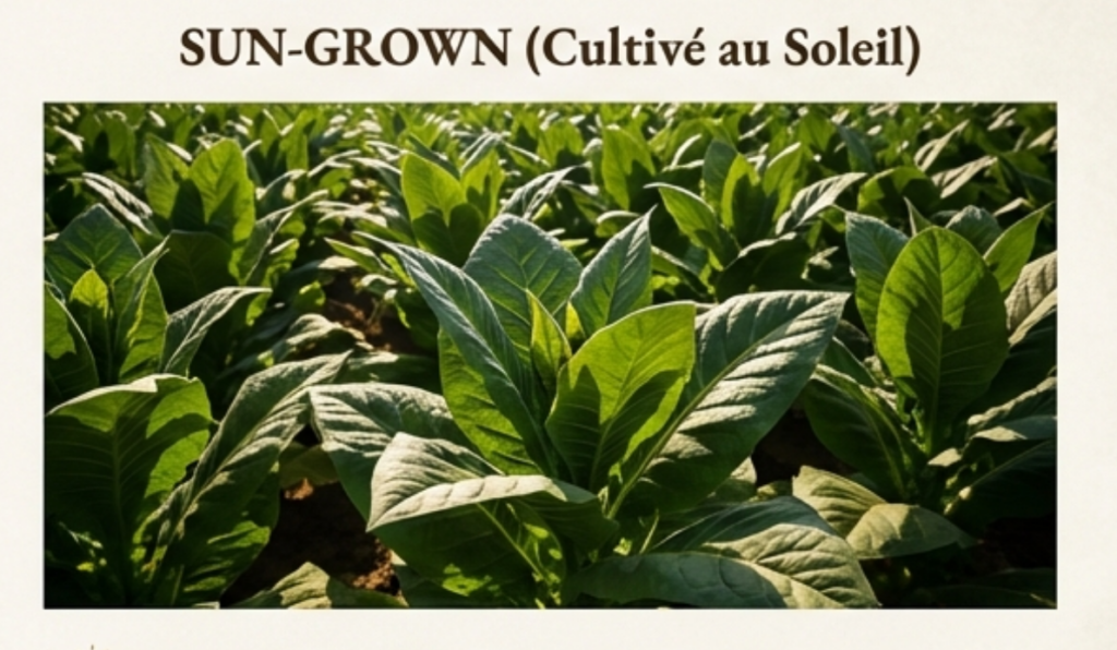 À l’inverse, la culture en plein soleil soumet la plante à l’intégralité du rayonnement solaire. Pour se protéger, elle développe des feuilles plus épaisses, plus huileuses et plus riches en sucres. Ces capes offrent des saveurs plus puissantes, complexes et souvent plus douces grâce à la concentration naturelle des sucres. La Connecticut Broadleaf incarne parfaitement cette approche rustique et expressive, idéale pour les capes Maduro.